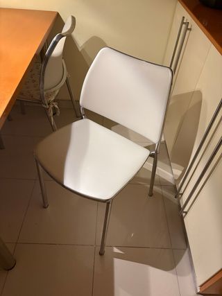 Silla moderna de diseño, ideal para cocina o comedor. - Asiento y respaldo de plástico. - Patas de metal. Las dos 25€ Una 15€