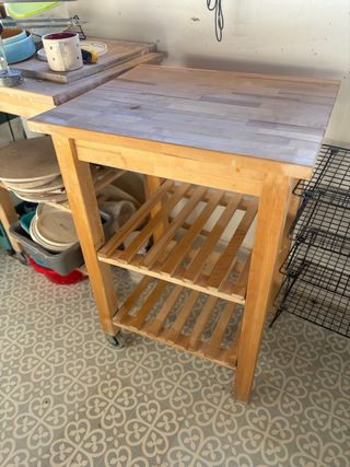 Isla de cocina doble estante madera estilo rústicas granja ideales para tu casa o negocio. Fabricadas bajo pedido en madera maciza. Robustas de fabricación artesanal . Sobre madera maciza 4cm patas madera viga 10x7cm. Medidas del precio de este anuncio: 120x80x90cm. Más informacíon mediante whatsapp al -651 585 164- Transporte no incluido o recogida en Mataró .