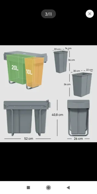 🔴 PRODUCTO NUEVO 🔴 Sistema de cubos de basura extraíbles para cocina. Incluye dos cubos de diferentes capacidades para separar residuos. - Capacidad total de 30L (20L + 10L). - Diseño integrado para mueble de cocina.