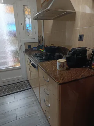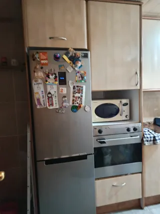 Conjunto de cocina con muebles y electrodomésticos. (Excepto frigorífico y lavavajillas) - Muebles de cocina en muy buen estado. - Mueble de cocina auxiliar alto de almacenaje. - Encimera y frontal de granito. - Fregadero doble de acero inoxidable. - Grifo. - Horno. - Campana extractora. Está todo como nuevo, muy bien cuidado, sin ningún daño. Desmontaje a cargo del comprador.