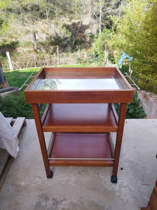 Mesa de cafe con ruedas y espejo ideal para cocinas o salones, en buen estado, se vende porque no tengo espacio.
