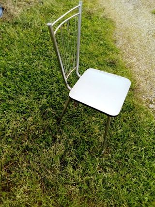 Mítica silla metálica, vintage de cocina. De las que había eternamente en las cocinas de nuestras abuelas. Necesita limpieza pero está entera incluidas las gomas de las patas que son las más difíciles de encontrar Escucho ofertas Las fotos son. Parte de la descripción