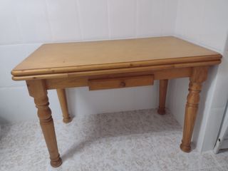 Mesa de cocina en buen estado, con acabado en roble chapado. No tiene el cajón. Cerrada mide 39 de fondo, abierta el doble 78. En las fotos se ve bien. - Diseño clásico y funcional. - Patas de madera robustas.
