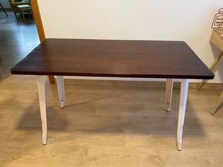 Bonita y moderna mesa estilo nordico. Madera color wengué y patas de aluminio blanco.