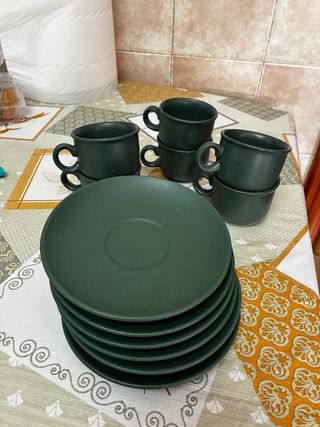6 tazas de cafe verde oscuro