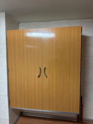 Armario de cocina con un diseño moderno y funcional. - Acabado en madera y detalles metálicos. - Color beige y marrón. Precio negociable