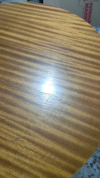Mesa redonda de madera con un diseño clásico y elegante. Perfecta para cualquier comedor o sala de estar. Tiene desperfectos que se aprecian un poco en la foto, no está lisa.Pero la vendo con cristal a medida para poner encima y queda bien. Diámetro: 80cm Altura: 74 cm - Base de cuatro patas robustas.