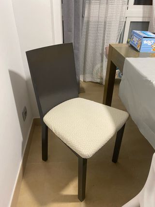 Conjunto de sillas de comedor. Son amarillas y están un poco estropeadas pero no rotas, sólo un poco gastadas. Las regalo con las fundas. Para quien las necesite.