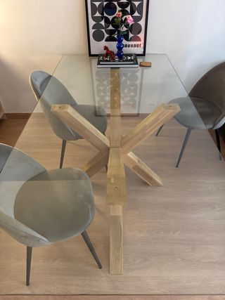 Mesa de comedor cristal y madera