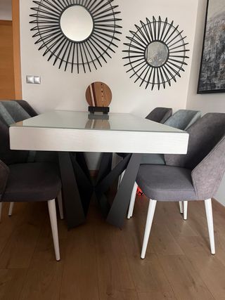 Mesa comedor cristal extensible y 5 sillas