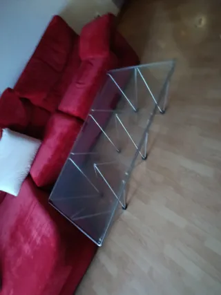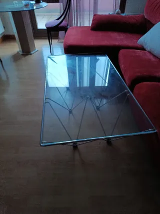 Elegante mesa de centro con un diseño moderno y minimalista. Su superficie de cristal transparente y estructura metálica le dan un toque sofisticado a cualquier sala. - Diseño contemporáneo. - Base metálica robusta.