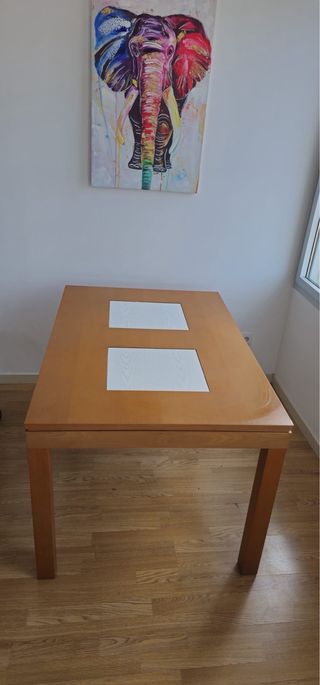 Mesa de comedor, con 2 plegables