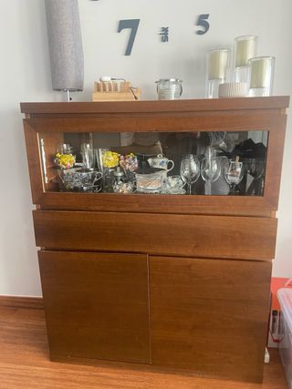 Mueble de comedor madera y cristal