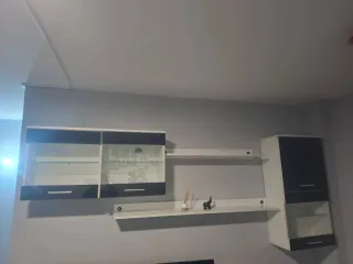 Conjunto de muebles de comedor con acabados en madera - Diseño moderno y elegante. - Combina a la perfección con cualquier estilo de decoración. Se puede vender junto o por separado , los muebles eran combinado en color gris y blanco , me canse y le puse un vinilo blanco que se puede quitar si te gustara mas como antes , subo fotos de cono eran antes (gris y blanco) y como estan ahora con el vinilo blanco Cada modulo son 100€ -Mueble de TV Alto 43 Ancho 130 Fondo 51 -Mueble alto Alto 130 Fondo 41 Ancho 110 -Mueble cajjon Alto 25 Fondo 61 Ancho 110