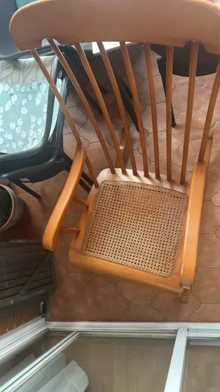 Mecedora de madera con asiento de ratán