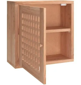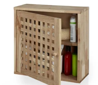 Mueble auxiliar de madera con diseño de rejilla en la puerta. - Puerta con detalle de rejilla. - Dos estantes interiores. - Acabado natural de la madera.