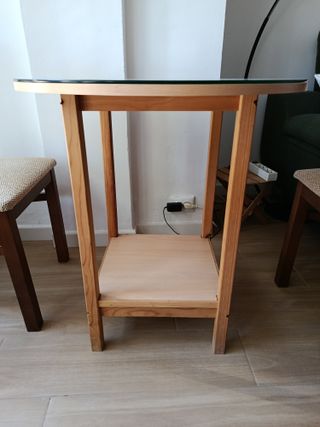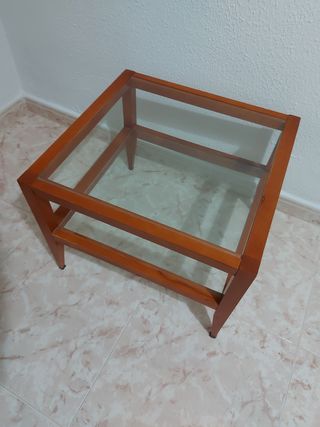 Mesa auxiliar con estructura de madera y superficie de cristal. - Diseño funcional y atemporal. - Patas de madera - balda intermedia a 22 cm de altura.