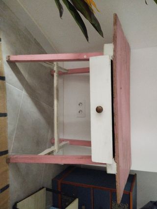 Mesa auxiliar estilo tocinera con un diseño encantador. - Estructura de madera. - Acabado en color rosa y blanco.