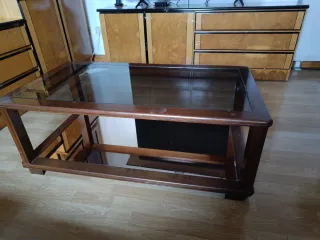 Mesa de centro madera maciza y cristal