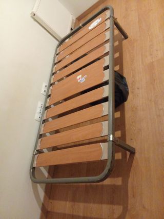 Base de somier para cama. - Estructura de metal. - Láminas de madera.