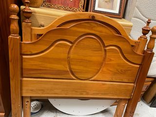 Precioso Cabecero de madera con un diseño clásico y elegante, ideal para camas de 90 cm o 80 cm. Medidas, ancho 99 CT altura 107 CT Ver todos los detalles en las fotos que he añadido. - Acabado en tono marrón oscuro. - Detalles tallados en la parte superior. - Estructura robusta y duradera. Fuerte y resistente. Regalo el piecero si lo quieres, se puede poner como cabecero porque es igual. colgandolo en la pared ya tienes dos camas iguales. Precio económico para recoger en casa.