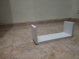 Estante con forma de U, ideal para colocar en cualquier pared o superficie. - Diseño moderno y minimalista. - Acabado liso y limpio.