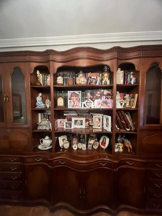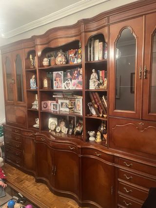 Mueble de salón modular de madera con varios compartimentos y cajones. - Diseño de madera. - Requiere desmontaje para su transporte.
