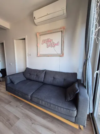 Sofá cama modelo Brooke de Maisons du Monde en color antracita de 3 plazas. Usado durante 6 años, pero funcional. Recién lavado! Nuevo vale 599€. Verás los signos de uso en las fotos, pero no impiden su funcionalidad. Los de la cama no se ven, ya que estan debajo. Recoger hasta 15 Enero aprox., piso 6 con ascensor.