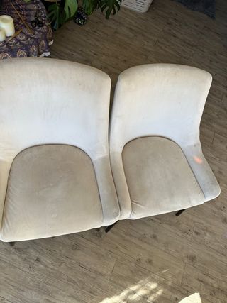 Conjunto de dos sillas de diseño elegante de Maison du Monde. El precio original era de aproximadamente 140 € cada una. Puedes consultar modelos nuevos similares en la web oficial de Maisons du Monde. 👉 Se venden las dos por 30 € • Tapicería en color blanco. • Patas negras de estilo moderno. • Con signos de uso visibles en las fotos. • Muy cómodas. 📍 Recogida en domicilio