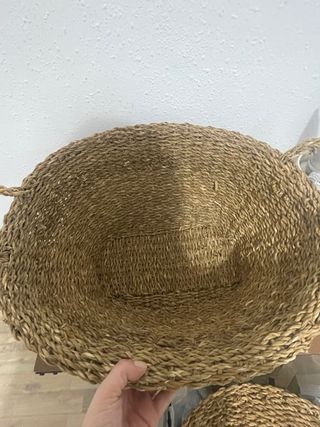 Cesto decorativo con asas, ideal para organizar o almacenar objetos. - Material tejido a mano. - Diseño rústico y natural. Revogida en Barcelona