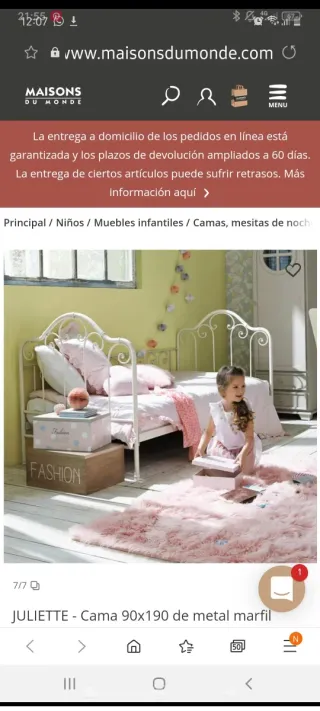 Cama de estilo clásico de Maison du Monde, perfecta para habitaciones infantiles. Su diseño en metal le da un toque romántico ( incluimos colchón) - Estructura de metal. - bonito color marfil