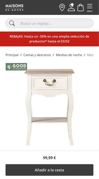 TENGO 2. PRECIO POR UNIDAD. ESTÁN EN LA CAJA SIN ABRIR. Mesita de noche Léontine de Maisons du Monde. Un mueble auxiliar con un diseño encantador. - Acabado en madera. - Color blanco y madera.