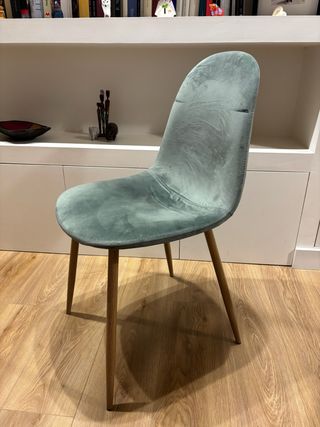 Silla de comedor con un diseño moderno y patas de madera. Precio unitario. 4 sillas disponibles.