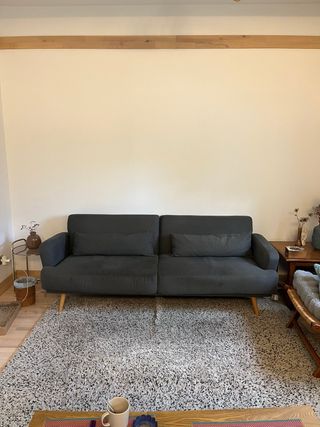 Vendo sofá cama modelo Nio de Maison du Monde, color gris claro, en muy buen estado. Es un sofá moderno y funcional, ideal para salón, estudio o habitación de invitados. Características: Marca: Maison du Monde Modelo: Nio Color: gris claro Sistema sofá cama abatible Incluye 2 cojines Estilo nórdico, líneas limpias Muy cómodo tanto como sofá como cama Medidas aproximadas: Sofá: 140–160 cm de ancho Cama abierta: aprox. 140 × 200 cm Estado: ✔️ Bien cuidado ✔️ Uso normal, sin roturas ni manchas ✔️ Estructura estable y mecanismo perfecto Se vende por cambio de mobiliario. 📏 Dimensiones como sofá: Ancho: 150 cm Altura: 82 Entrega en mano