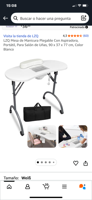 Mesa de manicura plegable, ideal para profesionales o uso doméstico. Se incluye una lámpara para facilitar el trabajo y aspiradora. - Diseño compacto y funcional. - Fácil de transportar y almacenar. - Fácil de limpiar. Nunca abierta, fue comprada en Amazon. LAS MEDIDAS SON APROXIMADAS.