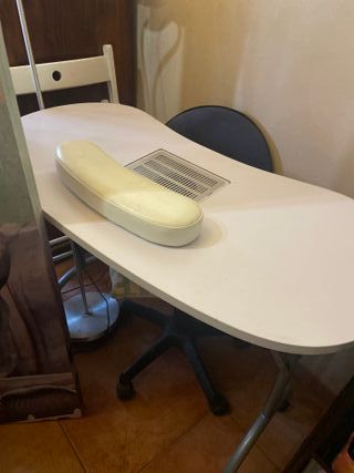 Mesa de manicura con un diseño moderno y funcional. Incorpora un aspirador para mantener el área de trabajo limpia. - Superficie lisa y fácil de limpiar. - Aspirador integrado. - Estructura robusta. Precio negociable