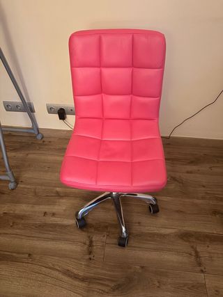 Silla giratoria de color rosa, ideal para salones de manicura o para usar en la oficina. Su diseño moderno y funcional la hace muy práctica. - Base con ruedas para fácil movilidad. - Tapizado acolchado para mayor comodidad. - Estructura metálica robusta.