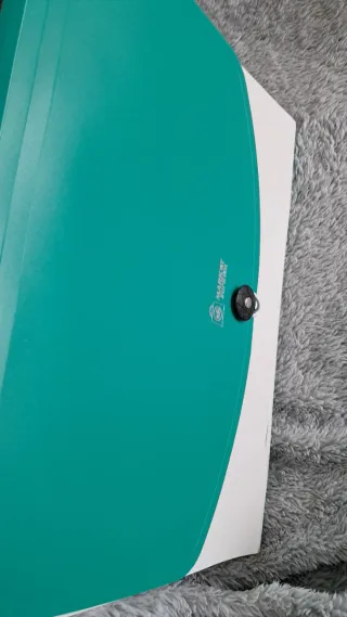 Archivador de la marca MANICURE con un diseño moderno. Sin usar. - Color principal verde azulado. - Detalles en blanco. - Cierre de seguridad.