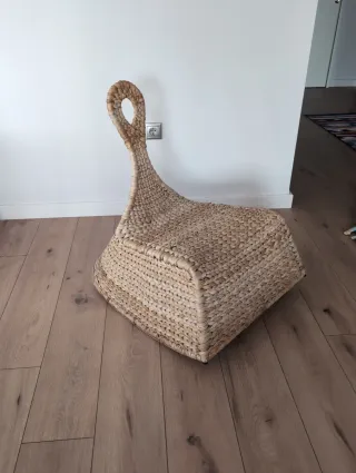 Puf redondo de Ikea, perfecto para añadir un toque natural a tu hogar. Su diseño tejido lo hace un accesorio versátil. - Materiales naturales. - Textura tejida a mano.