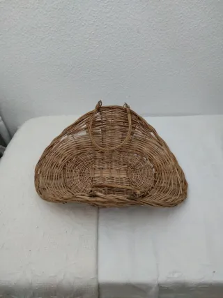 Cesta de mimbre con asa, ideal para transportar botellas. - Diseño ovalado. - Asa curva para un agarre cómodo. - Tejido trenzado.