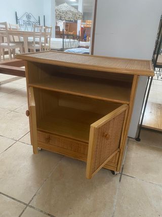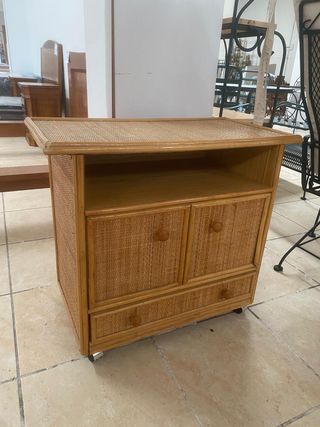 Mueble Auxiliar mimbre y bambú con ruedas 2 puertas 1 cajón