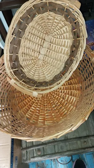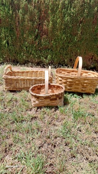 Cestas de mimbre, para servir alimentos o como decoración, tres preciosas cestas, cuyas medidas son, 18 x 12 , 21 x 9 y 20 x 8, el conjunto de tres cestas es ideal para servir panes frutas aperitivos etc, las cestas se encuentran en perfecto estado, y se nota que son artesanales hechas a mano, vendo el lote de tres por 15 € , si alguien las quiere de forma individual ,las vendo a 8 € la unidad
