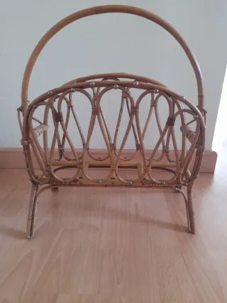 Revistero de mimbre con un diseño curvo y patas.MAS MUEBLES.EN MI PERFIL. - Material: Mimbre - Color: Natural