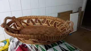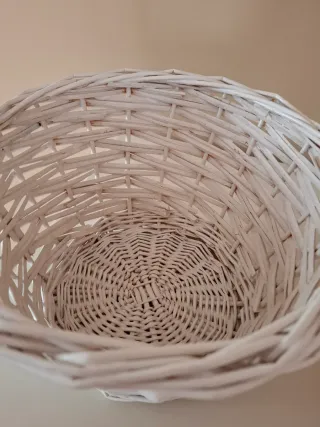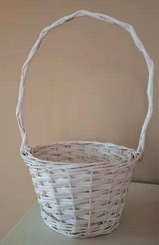 Cesta decorativa con un diseño clásico y elegante. - Asa alta y retorcida para facilitar el transporte. - Base ancha y estable. - Tejido de mimbre entrelazado. Fondo cesta 15 No acepto regateos
