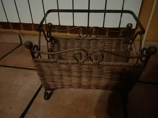 Revistero de metal y mimbre