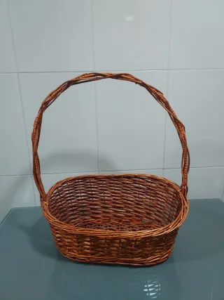 Cesta de mimbre con un diseño ovalado y un asa curva. - Material natural tejido. - Asa trenzada para mayor comodidad. - Tonos marrones cálidos. 🔴🔴 NO ENVÌO, solo en persona, decido a la altura del as