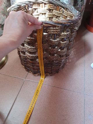 cestas de mimbre, es antigua, muy buen estado, nada roto bien cuidadas. Son dos iguales. ancho 34 CT fondo 23 CT altura sin las asas 9 CT bonitas y decorativas, para muchos usos en la cocina, en cualquier lugar queda estupenda. te la puedo enviar.