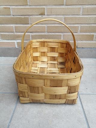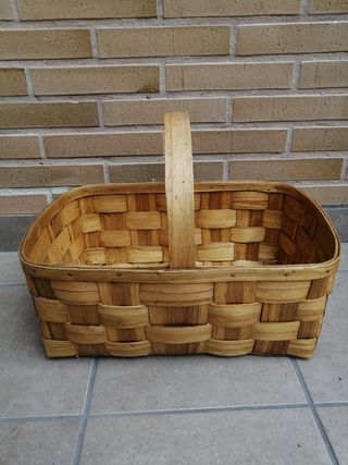 Cesta de mimbre con un diseño clásico y natural. - Tejido a mano con fibras resistentes. - Asa trenzada para facilitar el transporte. - Base estable para colocarla en cualquier superficie. Hay otra más pequeña de 27x18. El precio es de la grande interesados preguntar por la pequeña o por el lote.