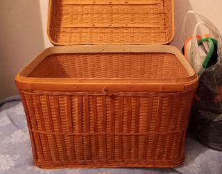 Baúl de mimbre, ideal para guardar mantitas del sofá, para menaje de camping, para un dia de campo, decorativo.... multiusos.