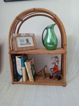 Estantería de caña y mimbre recientemente barnizada hecha a mano. Tres estantes. Fuerte para aguantar peso y muy decorativa. Realizada a mano en los años 70. Sin roturas y como nueva. Decoración ecológica y de tendencia para tu hogar. Decorará con encanto cualquier pared de la casa. Medidas descritas. Realizo envíos por la aplicación. Gran surtido en artículos de tendencia retro en mi perfil. Reciclo, recupero y actualizo. vintage antiguo antigua Antigüedades deco kistch vidriado vajilla cocina Duralex Arcopal cerámica manises barro tradicional cristal arte artesanía hand made retro cuadro chino japonés oriental jarra azucarero 60 80 XX nácar latón oro dorado manises cuadro bronce plato bol artesanal figura jarrón madera pop nórdico escandinavo ratán natural 70 midcentury sol espejo madera industrial figura jarrón opalina aplique chandelier láminas Redouté marco cuadro murano fase aluminio MMM botánica oro dorado viejo pátina original